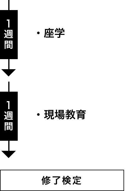 | 現場教育(7日間) | ・各種機器の操作実習 ・接客及び地理教習(待機所など) |